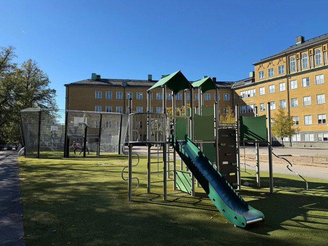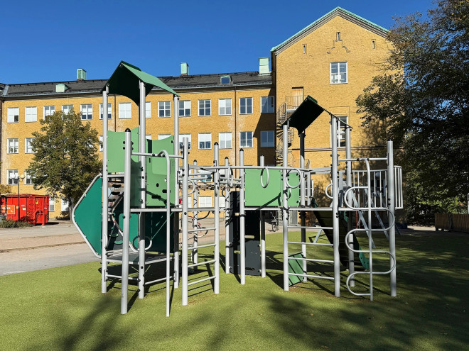 Fort with two towers and a slide